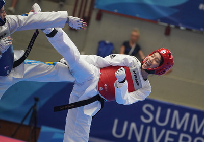 全大運跆拳道對打28日進行第一天賽程,國體大斬獲2面金牌,世錦賽暨世大運國手莊天羽在公開女子49公斤級完成2連霸,大一的學弟黃昱翔則在公開男子58公斤級初嚐大運金牌...