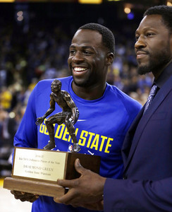 金州勇士在台灣時間1日進行2017-18賽季熱身賽首戰,上季榮獲「年度最佳防守球員」殊榮的勇士明星前鋒格林(Draymond Green),此戰也進行獎項頒贈儀式,且有趣的是,「頒...