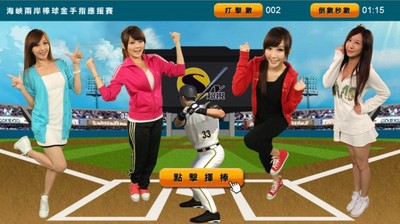 2012年「頂新盃」海峽兩岸棒球對抗賽10月24日在台北天母球場正式開戰,為了幫球隊加油打氣,轉播單位特別製作了網路遊戲「「棒球金手指應援賽」,讓球迷可以和啦啦隊女...