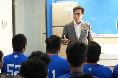 富邦悍將27日新莊開幕戰邀請「大董」富邦集團董事長蔡明忠、副領隊陳金鋒以及新北市長朱立倫到場開球,談到新莊球場整建,蔡明忠表示,目前只進行了百分之60至70的整建...