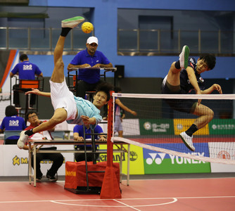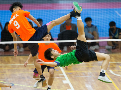 中華民國藤球協會舉辦的「2021國際移工藤球王爭霸戰」(The King of Sepaktakraw, 2021),因疫情影響延辦,14日終於順利在臺北市中正運動中心熱鬧開踢,十四支隊伍火力...