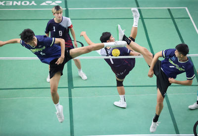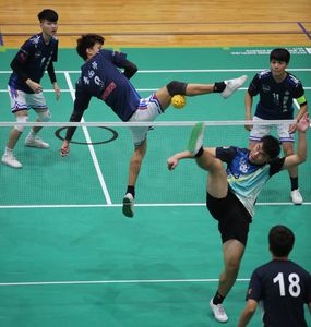 110年第二次全國藤球排名賽31日在新莊國民運動中心進行最後一天賽程,由精彩的甲組四人賽壓軸登場,老將詹宇庭領軍的台北地獄犬B隊展現旺盛求勝心,接連過關斬將奪下男...