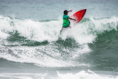 2022台灣國際衝浪公開賽邁入第3天賽程,15日進行男女短板激烈競賽,不少好手上場在海上飛躍,相當得精彩,讓岸上觀賽民眾驚叫連連,有多位名將順利晉級第2輪,不過,女...