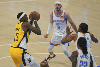 系列賽陷入2勝3敗,已經無退路的印第安那溜馬,20日在NBA年度總冠軍賽系列第6戰回到主場,迎戰奧克拉荷馬雷霆。頂著右腿傷勢持續先發上陣的哈利伯頓率隊打出氣勢,溜馬...