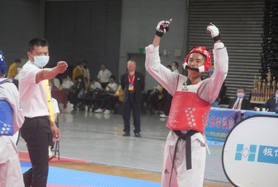 全國中等學校跆拳道標賽今進行對打高中組首日賽程,共進行高男女組6量級賽事,桃園市立平鎮高中打進5組金牌戰表現最搶眼,隊中的女將林凌禛投入訓練10年終於走出老二命...