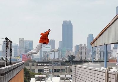 日本第一職業跑酷高手ZEN(島田善)日前到台灣參加活動,期間跑到高雄一間7層樓高的大樓頂樓,直接跳到隔壁棟大樓的圍牆上,瞬間飛越將近3公尺的距離,讓人看得頭皮發麻...