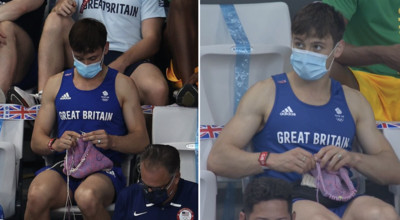 由於本屆東奧沒開放觀眾進場,因此總可以看未出賽的選手,坐在觀眾席為隊友加油。然而,本屆東奧拿下男子雙人10公尺跳水金牌的英國選手戴利(Tom Daley),卻被發現在觀...