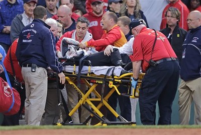 芬威球場6日紅襪與運動家之戰,場邊意外濺血。坐在三壘後方觀眾席的一位女球迷,此役開賽不久不幸遭運動家隊羅瑞(Brett Lawrie)的斷棒打傷頭,當場血流不止緊急送醫,可...