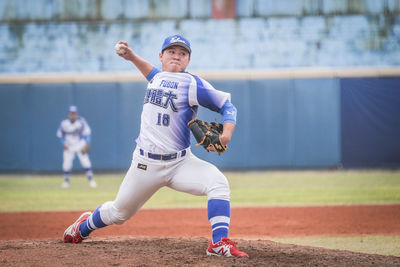 台灣體大在8日大專棒球聯賽以2比1擊敗嘉義大學,先發投手邱志鵬賽前與隊友分享勵志小語。