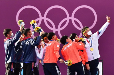 中華射箭男團在金牌戰不敵韓國,但韓國資深名將吳真赫(Oh Jinhyek)邀請「金銀銅」3隊自拍,畫面感動無數台灣人,大讚這就是奧運精神,紛紛跪求「正面照」。亞洲射箭聯盟...