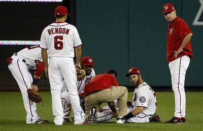 5天前才遭觸身球擊中左膝,有可能打出生涯年的國民「強打少年」哈波(Bryce Harper),19日戰光芒6局上又因左大腿拉傷提前退場,所幸只是輕微拉傷,教練團可鬆一口氣。