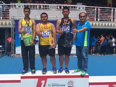 105年全中運進入最後一天的賽程,上午在台東縣立體育進行的國男組鐵餅決賽,台東體中出賽的林紳豪以46.54公尺的佳績,為台東拚下第一面金牌,同時也打破大會45.37公尺紀...