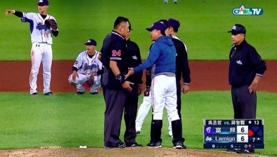 Lamigo桃猿25日對戰富邦悍將,牛棚投手吳丞哲連5場出賽,6局在二壘有人時被判投手犯規,桃猿總教練洪一中上場抗議,裁判討論後仍維持原判,不過猿隊7局靠著王柏融本場第...