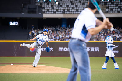 「韓流傳奇男團」SUPER JUNIOR–L.S.S.小分隊21日降臨台北大巨蛋,利特、神童、始源為富邦悍將開球。利特站上投手丘投出「不落地開球」,引起全場歡呼。
