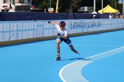 台灣滑輪溜冰好手郭立陽、陳映竹今天分別在世界運動會男、女子滑輪溜冰公路賽100公尺爭先賽傳出捷報,各以10秒143、10秒854拿下銀牌,健力好手楊森也搶下一面銀牌。