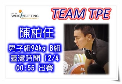 2017年安納罕舉重世錦賽,我國選手陳柏任在男子94公斤級登場,以抓舉166公斤、挺舉180公斤、總和346公斤,在所有參賽選手中名列第二十名,但抓舉打破自己所創的全國紀錄。