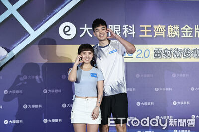 昨日剛剛公佈結婚登記喜訊,台灣羽球黃金男雙好手王齊麟11日下午就和新婚妻子陳詩媛連袂甜蜜現身,為眼科近視雷射手術分享術後感受以及視力改善好處。王齊麟、陳詩媛兩...