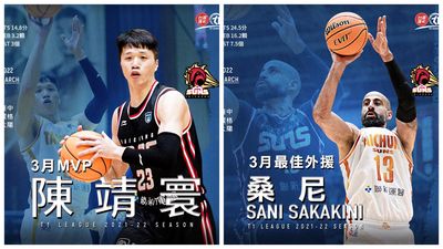 T1職籃台中葳格太陽3月打出5勝1敗優異表現,排名大幅提升,球隊也一舉包辦單月兩大獎項,隊長陳靖寰生涯首度獲選單月MVP殊榮,至於最強洋將桑尼(Sani Sakakini),也繼1...
