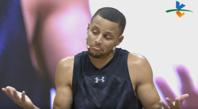 NBA球星柯瑞(Stephen Curry)旋風來台出席籃球對抗賽,球迷期待他最後投出「絕殺」,沒想到被小球員蓋火鍋,觀賽的藝人陶晶瑩卻衝上前要求「再來一次啦」,他沒拒絕,...