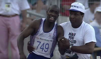 奧運官方分享了24年前,擁有奪牌希望英國田徑名將雷蒙德(Derek Redmond),在400公尺競賽中因肌肉撕裂痛苦單膝下跪,但他依然不放棄,在父親陪伴下走完全程的「永不放...