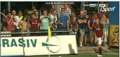 足球場上球迷熱情見怪不怪,一名捷克女球迷在國內聯賽中,為支持自己球隊,趁開角球的時候露出自己的雙乳,希望能夠進球,但可惜這招沒用。