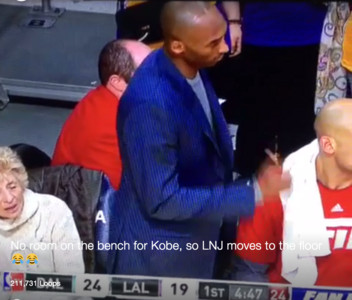 湖人「老大」布萊恩(Kobe Bryant)在聯盟具有崇高的地位,當你還是個小菜鳥看到老大哥還有不讓位的道理?27日湖人與小牛之戰,布萊恩看到板凳區沒位置,霸氣一比讓南斯...