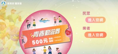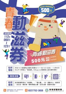 為培養青年族群自主參與運動及欣賞賽事消費習慣,教育部體育署規劃每年常態性發放16至22歲國民每人500元青春動滋券,今(112)年度將在明(1)日上午10時起開放上動滋網(...