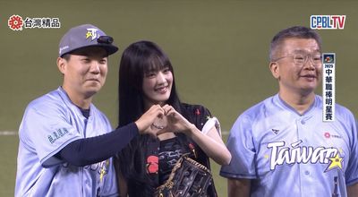 中職明星賽20日開球嘉賓邀請到韓國人氣女團(G)I-DLE成員MINNIE,江坤宇擔任開球捕手,兩度主動比愛心,掀起全場暴動!