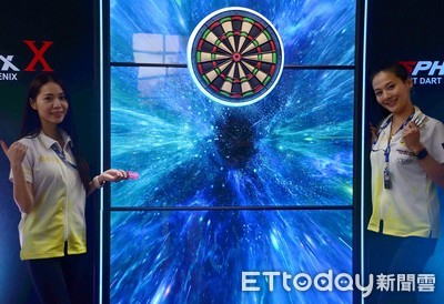 第13屆全國飛鏢公開賽16日板樹體育館首日賽程,菲利斯公司展示「未來飛鏢機」吸引各國好手躍躍欲試。這台未來定價超過300萬新台幣的Phoenix X 未來機,採用全螢幕特效以...