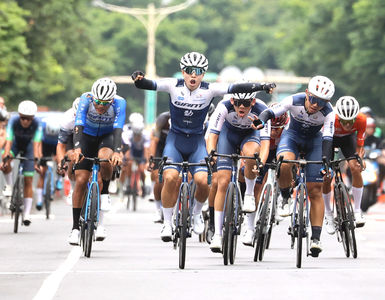 2025年國際自由車環台公路大賽正式開幕,首站賽事於16日在臺北市舉行。選手們在全長83.2公里的市區繞圈賽中展開激烈競技,需完成8圈的高速競賽。最後由泰國盧賈伊隊快克...