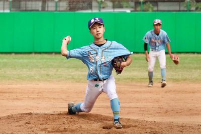 平鎮高中今天(17日)一日兩戰都以扣倒贏球,8強賽以9比2擊敗台東體中,4強賽再以12比0打退同縣市的北科附工,連6場扣倒對手,連五年挺進高中聯賽鋁棒組冠軍戰。