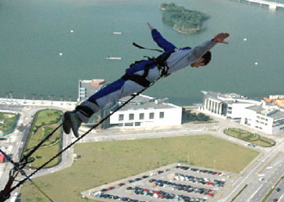 號稱「誠信比山高」的台北市議員王世堅,即將「行刑」高空彈跳,二度將自己獻為政治祭品,意外讓這項極限運動在國內掀起討論熱潮。2001年落成的澳門旅遊塔,近年舊瓶裝...