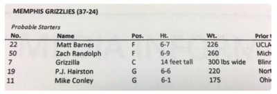 轉隊到灰熊的鳥人安德森(Chris Andersen),一到灰熊立刻入境隨俗,將自己的別名鳥人,立刻改成熊人(Grizzzilla),而且還號稱自己有136公斤、14呎高。