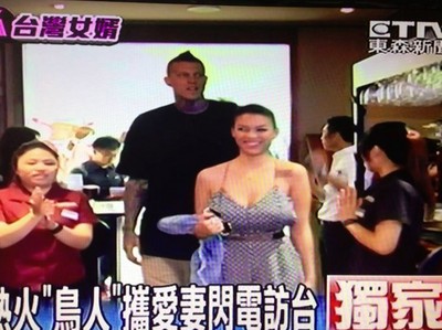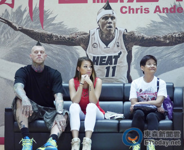 美國NBA熱火隊前鋒球員「鳥人」克里斯安德森(Chris Andersen),於13日晚間閃電訪台,被目擊到他帶著妻子及丈母娘到台北信義區用餐,他也親切地跟球迷問好,旁邊的混血美...