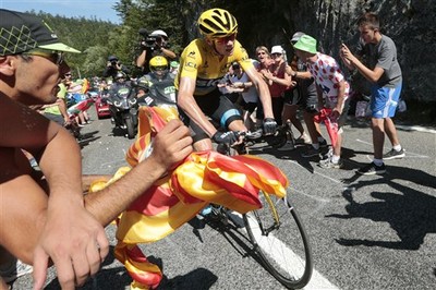 環法賽事盛大舉行,場邊觀眾也相當的多,不過不是每位觀眾都能遵守規則,甚至出現過頭的舉動,先前黃衫車手佛洛梅(Chris Froome)就遭到觀眾潑尿,SKY車隊教練布雷斯福德...