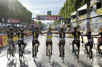 2015環法最後一站來到法國巴黎,在凱旋門的繞圈賽代表賽事即將畫下句點,SKY車隊的佛洛梅(Chris Froome)一舉拿下黃衫、紅點衫,車隊老闆巴萊爾斯福特(Dave Brailsfor...