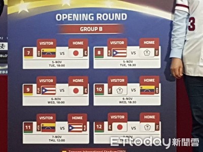 2019世界12強棒球賽11月舉辦,中華隊與日本、波多黎各、委內瑞拉4隊同在預賽B組,B組11月5日到7日於台中洲際棒球場與桃園棒球場舉行,世界棒壘總會12日公布賽程,中華隊...