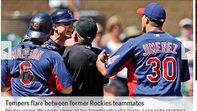 人家說,前隊友,見面三分情,但前洛磯隊、現為印地安人隊的右投席曼尼茲(Ubaldo Jimenez)卻不是如此,自從被交易後首度面對老東家,首局與強打托洛維斯基(Troy Tulowit...