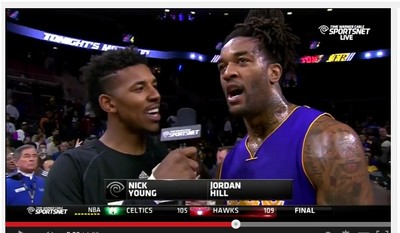 湖人隊3日擊敗活塞奪本季第5勝,贏球喜悅不在話下,湖人陣中有「Swaggy P」之稱的楊恩(Nick Young),賽後也不改搞笑個性,甚至當起場邊記者,訪問此役繳出「雙十」數據...