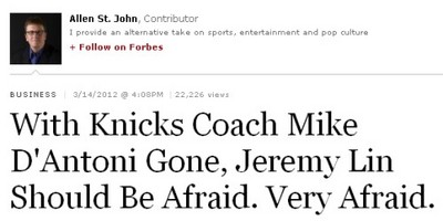 總教練丹東尼(Mike D'Antoni)走人,尼克也終於止敗,賽後許多紐約球迷的反應,大多是這個改變是很好的,顯示戰績還是最現實的,球迷再也受不了既傳出內鬨,又找不到勝利...
