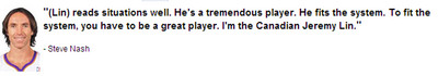 NBA兩屆MVP(最有價值球員)得主,效力於鳳凰城太陽隊的奈許(Steve Nash)無疑是現役的檔切戰術教科書。在林來瘋席捲整個NBA之後,奈許也表示了自己的意見,他說,「林書...