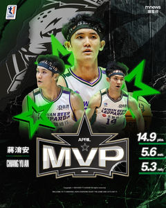 T1職籃聯盟本季最後一座鏡電視單月 MVP 與最佳外援獎盃得主於今日(7 日)公 布,台啤永豐雲豹蔣淯安與克羅馬(Lasan Kromah)兩人皆在媒體票選中以第1名的票數殺出重圍,在...