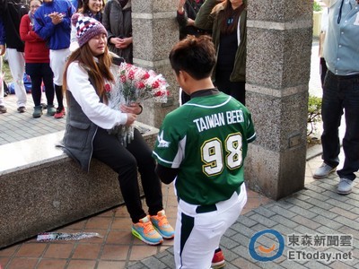 大專棒球賽公開組一級複賽,國立體大1比3敗給輔仁大學,賽後國立體大外野手劉展嘉串通隊友,上演浪漫求婚戲碼,不但把未婚妻弄哭,自己對未婚妻告白時,也是斗大眼淚不...