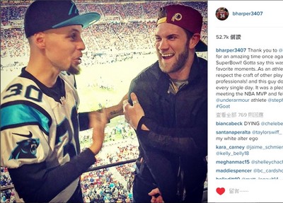 什麼場合能讓MLB、NBA聯盟兩大看板球星國民「少年強打」哈波(Bryce Harper)、勇士神射柯瑞(Stephen Curry)都親臨現場觀戰?第50屆超級盃做到了。8日哈波在個人Instagram...