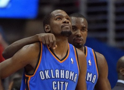 奧克拉荷馬雷霆雖然再次挺進西區決賽,但陣中「火鍋店老闆」伊巴卡(Serge Ibaka)卻因為左腿傷造成後面比賽報銷,新科年度MVP杜蘭特(Kevin Durant)跳出來精神喊話,告訴...