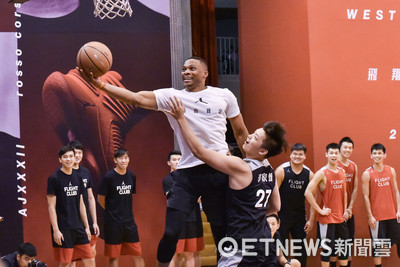NBA 2016-17賽季年度MVP衛斯布魯克(Rusell Westbrook)連續兩年訪台,4日也針對12名UBA頂尖好手進行訓練。其中身高205公分的長人曾祥鈞就在訓練中大膽嘗試爆扣,展現禁區...