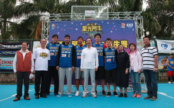 新北市政府主辦FIBA國際規格城市三對三籃球賽「新北星光3on3鬥牛賽」總決賽11日在新莊體育場熱鬧開打,自九區預賽脫穎而出的菁英強隊會師爭奪「新北之王」頭銜,市長朱立倫與新北市裕隆納智捷籃球隊球星,也蒞臨現場為選手加油打氣,以實際的行動來力挺籃球體育賽事。