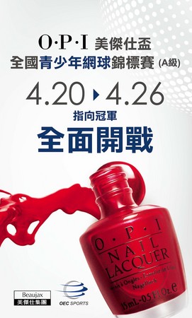 OPI美傑仕盃2012年首度舉辦,為第一家投入青少年網運的美妝品牌,也為充滿陽剛氣味的運動賽場投入一股美麗力量。去年賽事自參加獎到周邊規劃都大受好評,且定位為國內青少年最高等級的A級賽事,聚集全台最強網球小將參賽。