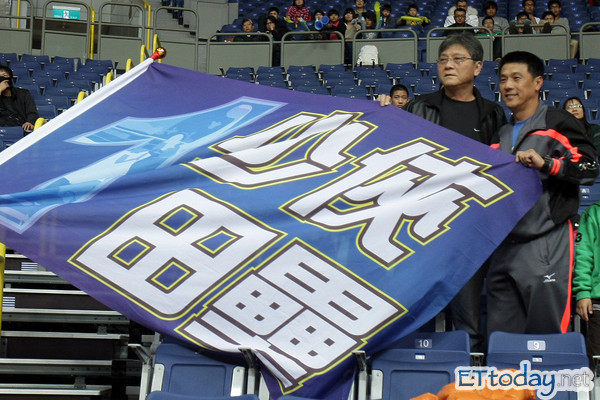 ▲田壘的父親(左)與統一獅的啦啦隊長標哥到場為田壘加油打氣(圖/記者賴郁泰)