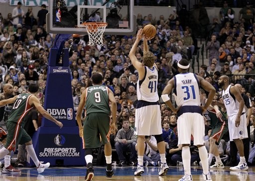 達拉斯小牛主場迎戰密爾瓦基公鹿,諾威斯基(Dirk Nowitzki)生涯第2萬3000分進帳,幫助小牛一路壓著公鹿打,第四節談笑用兵,先發五將場下休息,終場仍以102比76輕取公鹿,笑納四連勝。